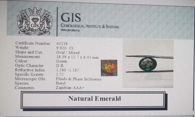 Beautiful 9.92 Ct. Emerald (Zambian Mines) Sava 11 Ratti Panna. Free Horoscope & Free Pundit Ji Advise / Consultation. Original Natural Lab certified gems by IGI GTL / Birth stones / Large Gem Selection of shree shubh Rashi Ratan Vedic dhan at Gem Mines. May Bhagwan Brahma, Vishnu, Shiv & Universe bless you.