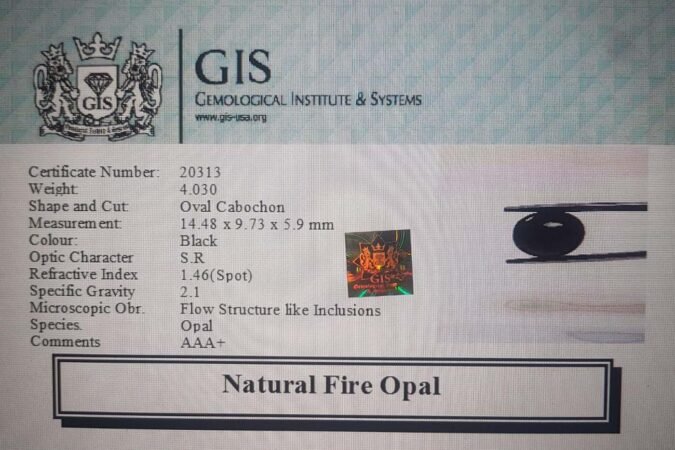 Beautiful 4.03 Ct. Fire Opal (Ethiopian Mines) Sava 4 Ratti Kala Opal. Free Horoscope & Free Pundit Ji Advise / Consultation. Original Natural Lab certified gems by IGI GTL / Birth stones / Large Gem Selection of shree shubh Rashi Ratan Vedic dhan at Gem Mines. May Bhagwan Brahma, Vishnu, Shiv & Universe bless you.
