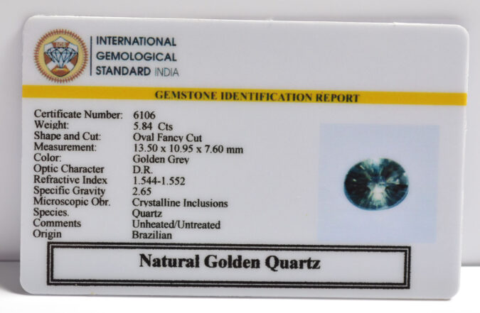 Beautiful 5.84 Cts Natural Quartz (Top-Mines) sva 6+ Ratti GOLDEN QUARTZ. Free Horoscope & Free Pundit Ji Astrological Advise / Consultation. Original Natural Lab certified gems by IGI GTL / Birth stones / Large Gem Selection of shree shubh Rashi Ratan Vedic dhan at Gem Mines. May Bhagwan Brahma, Vishnu, Shiv & Universe bless you.