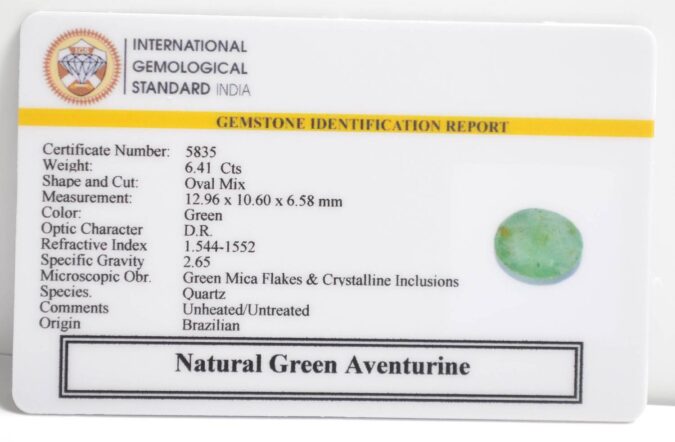 Certified Natural Green Aventurine 6.41 Ct.(7+ Ratti) in Oval Mix shape