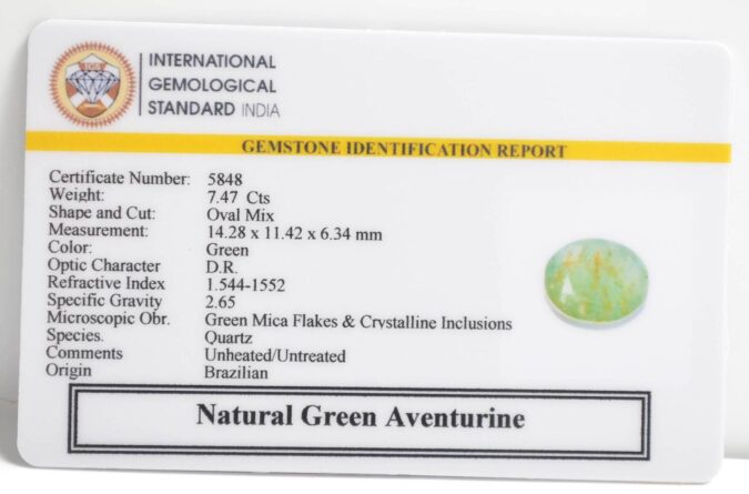Certified Natural Green Aventurine 7.47 Ct.(8+ Ratti) in Oval Mix shape