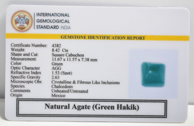 Certified Natural Agate (Green Hakik) 8.42 Ct.(9+ Ratti) in Square Cabochon shape