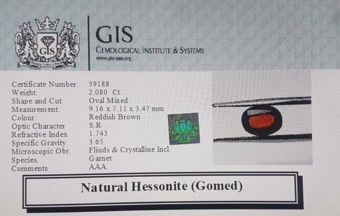 Beautiful 2.08 Ct. Hessonite (Gomed) (Ceylon Sri-Lanka) Mines Sava 2 Ratti Gomed. Free Horoscope & Free Pundit Ji Advise / Consultation. Original Natural Lab certified gems by IGI GTL / Birth stones / Large Gem Selection of shree shubh Rashi Ratan Vedic dhan at Gem Mines. May Bhagwan Brahma, Vishnu, Shiv & Universe bless you.