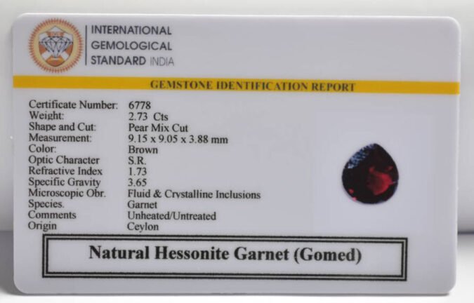 Certified Natural Hessonite Garnet (Gomed) 2.73 Ct.(3+ Ratti) in Pear Mix Cut shape