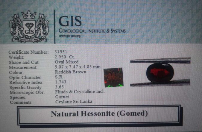 Beautiful 2.95 Ct. Hessonite (Gomed) (Ceylon Sri Lanka Mines) Sava 3 Ratti Gomed. Free Horoscope & Free Pundit Ji Advise / Consultation. Original Natural Lab certified gems by IGI GTL / Birth stones / Large Gem Selection of shree shubh Rashi Ratan Vedic dhan at Gem Mines. May Bhagwan Brahma, Vishnu, Shiv & Universe bless you.