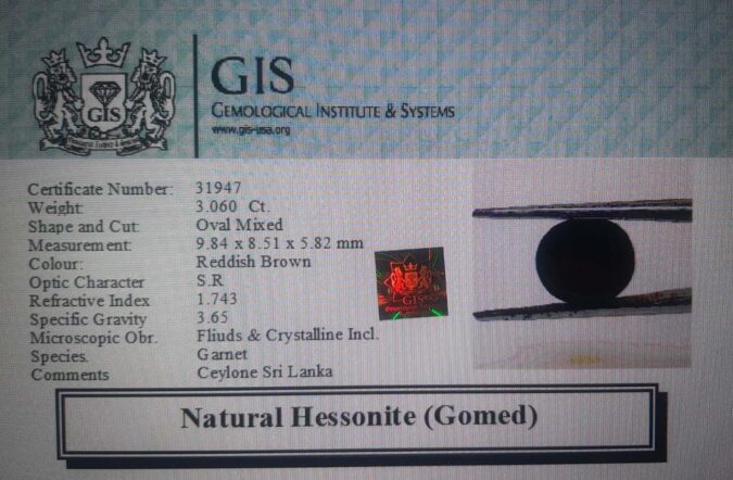 Beautiful 3.06 Ct. Hessonite (Gomed) (Ceylon Sri Lanka Mines) Sava 3 Ratti Gomed. Free Horoscope & Free Pundit Ji Advise / Consultation. Original Natural Lab certified gems by IGI GTL / Birth stones / Large Gem Selection of shree shubh Rashi Ratan Vedic dhan at Gem Mines. May Bhagwan Brahma, Vishnu, Shiv & Universe bless you.
