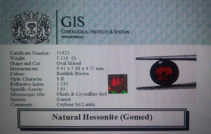 Beautiful 3.11 Ct. Hessonite (Gomed) (Ceylon Sri Lanka Mines) Sava 3 Ratti Gomed. Free Horoscope & Free Pundit Ji Advise / Consultation. Original Natural Lab certified gems by IGI GTL / Birth stones / Large Gem Selection of shree shubh Rashi Ratan Vedic dhan at Gem Mines. May Bhagwan Brahma, Vishnu, Shiv & Universe bless you.