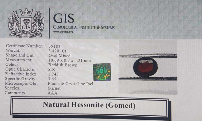 Beautiful 3.42 Ct. Hessonite (Gomed) (Ceylon Sri-Lanka) Mines Sava 3 Ratti Gomed. Free Horoscope & Free Pundit Ji Advise / Consultation. Original Natural Lab certified gems by IGI GTL / Birth stones / Large Gem Selection of shree shubh Rashi Ratan Vedic dhan at Gem Mines. May Bhagwan Brahma, Vishnu, Shiv & Universe bless you.
