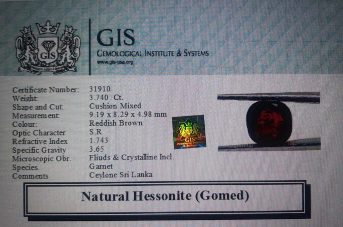 Beautiful 3.74 Ct. Hessonite (Gomed) (Ceylon Sri Lanka Mines) Sava 4 Ratti Gomed. Free Horoscope & Free Pundit Ji Advise / Consultation. Original Natural Lab certified gems by IGI GTL / Birth stones / Large Gem Selection of shree shubh Rashi Ratan Vedic dhan at Gem Mines. May Bhagwan Brahma, Vishnu, Shiv & Universe bless you.