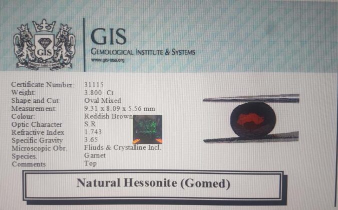 Beautiful 3.8 Ct. Hessonite (Gomed) (Ceylon Sri Lanka Mines) Sava 4 Ratti Gomed. Free Horoscope & Free Pundit Ji Advise / Consultation. Original Natural Lab certified gems by IGI GTL / Birth stones / Large Gem Selection of shree shubh Rashi Ratan Vedic dhan at Gem Mines. May Bhagwan Brahma, Vishnu, Shiv & Universe bless you.
