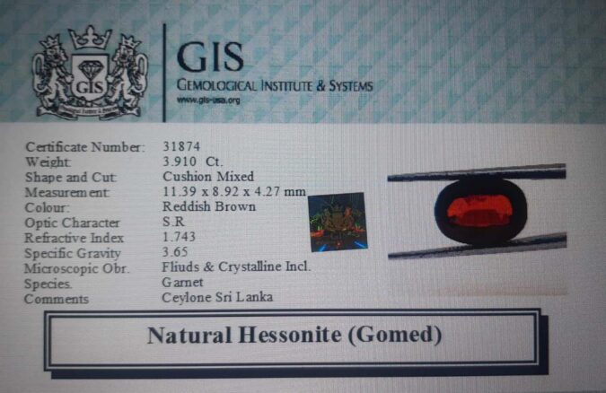 Beautiful 3.91 Ct. Hessonite (Gomed) (Ceylon Sri Lanka Mines) Sava 4 Ratti Gomed. Free Horoscope & Free Pundit Ji Advise / Consultation. Original Natural Lab certified gems by IGI GTL / Birth stones / Large Gem Selection of shree shubh Rashi Ratan Vedic dhan at Gem Mines. May Bhagwan Brahma, Vishnu, Shiv & Universe bless you.