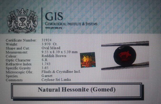 Beautiful 3.97 Ct. Hessonite (Gomed) (Ceylon Sri Lanka Mines) Sava 4 Ratti Gomed. Free Horoscope & Free Pundit Ji Advise / Consultation. Original Natural Lab certified gems by IGI GTL / Birth stones / Large Gem Selection of shree shubh Rashi Ratan Vedic dhan at Gem Mines. May Bhagwan Brahma, Vishnu, Shiv & Universe bless you.