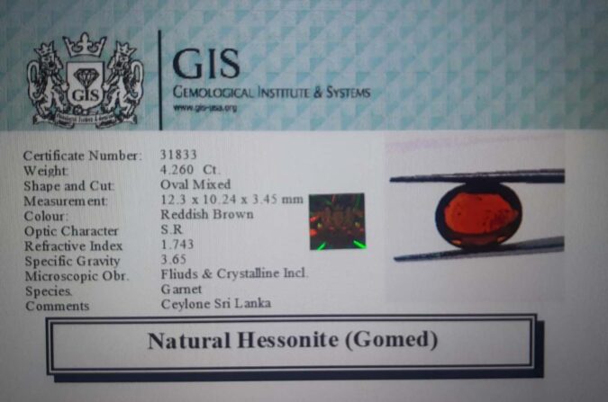 Beautiful 4.26 Ct. Hessonite (Gomed) (Ceylon Sri Lanka Mines) Sava 4 Ratti Gomed. Free Horoscope & Free Pundit Ji Advise / Consultation. Original Natural Lab certified gems by IGI GTL / Birth stones / Large Gem Selection of shree shubh Rashi Ratan Vedic dhan at Gem Mines. May Bhagwan Brahma, Vishnu, Shiv & Universe bless you.