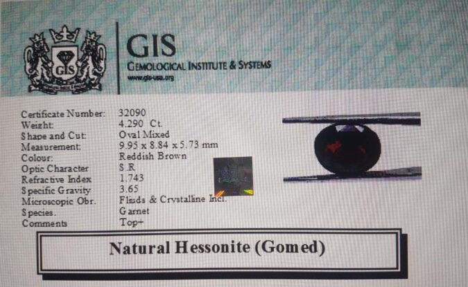 Beautiful 4.29 Ct. Hessonite (Gomed) (Ceylon Sri Lanka Mines) Sava 4 Ratti Gomed. Free Horoscope & Free Pundit Ji Advise / Consultation. Original Natural Lab certified gems by IGI GTL / Birth stones / Large Gem Selection of shree shubh Rashi Ratan Vedic dhan at Gem Mines. May Bhagwan Brahma, Vishnu, Shiv & Universe bless you.