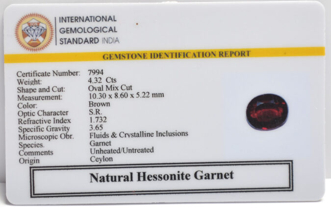 Beautiful 4.32 Cts Natural Hessonite Garnet (Top+-Mines) sva 4+ Ratti HESSONITE GOMED. Free Horoscope & Free Pundit Ji Astrological Advise / Consultation. Original Natural Lab certified gems by IGI GTL / Birth stones / Large Gem Selection of shree shubh Rashi Ratan Vedic dhan at Gem Mines. May Bhagwan Brahma, Vishnu, Shiv & Universe bless you.