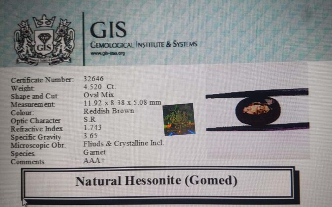 Beautiful 4.52 Ct. Hessonite (Gomed) (Ceylon (Sri Lanka) Mines) Sava 5 Ratti Gomed. Free Horoscope & Free Pundit Ji Advise / Consultation. Original Natural Lab certified gems by IGI GTL / Birth stones / Large Gem Selection of shree shubh Rashi Ratan Vedic dhan at Gem Mines. May Bhagwan Brahma, Vishnu, Shiv & Universe bless you.