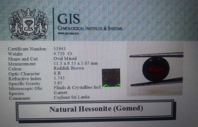 Beautiful 4.72 Ct. Hessonite (Gomed) (Ceylon Sri Lanka Mines) Sava 5 Ratti Gomed. Free Horoscope & Free Pundit Ji Advise / Consultation. Original Natural Lab certified gems by IGI GTL / Birth stones / Large Gem Selection of shree shubh Rashi Ratan Vedic dhan at Gem Mines. May Bhagwan Brahma, Vishnu, Shiv & Universe bless you.