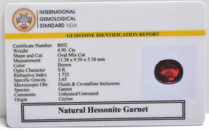 Beautiful 4.9 Cts Natural Hessonite Garnet (Top-Mines) sva 5+ Ratti HESSONITE GOMED. Free Horoscope & Free Pundit Ji Astrological Advise / Consultation. Original Natural Lab certified gems by IGI GTL / Birth stones / Large Gem Selection of shree shubh Rashi Ratan Vedic dhan at Gem Mines. May Bhagwan Brahma, Vishnu, Shiv & Universe bless you.