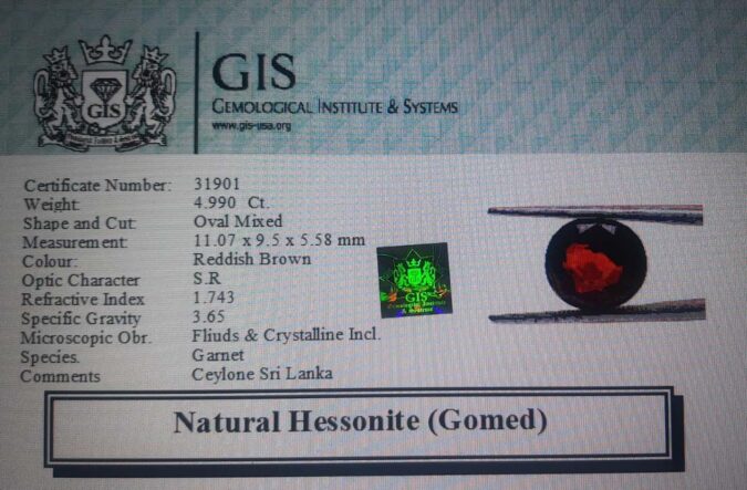 Beautiful 4.99 Ct. Hessonite (Gomed) (Ceylon Sri Lanka Mines) Sava 5 Ratti Gomed. Free Horoscope & Free Pundit Ji Advise / Consultation. Original Natural Lab certified gems by IGI GTL / Birth stones / Large Gem Selection of shree shubh Rashi Ratan Vedic dhan at Gem Mines. May Bhagwan Brahma, Vishnu, Shiv & Universe bless you.