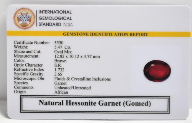 Beautiful 5.47 Cts Natural Hessonite Garnet (Gomed) (AAA-Mines) sva 6+ Ratti HESSONITE GOMED. Free Horoscope & Free Pundit Ji Astrological Advise / Consultation. Original Natural Lab certified gems by IGI GTL / Birth stones / Large Gem Selection of shree shubh Rashi Ratan Vedic dhan at Gem Mines. May Bhagwan Brahma, Vishnu, Shiv & Universe bless you.
