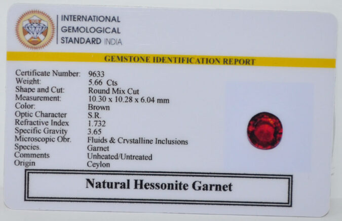 Certified Natural Hessonite Garnet 5.66 Ct.(6+ Ratti) in Round Mix Cut shape