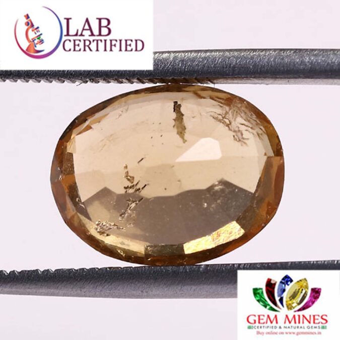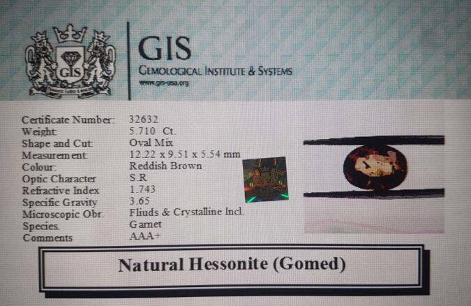Beautiful 5.7 Ct. Hessonite (Gomed) (Ceylon (Sri Lanka) Mines) Sava 6 Ratti Gomed. Free Horoscope & Free Pundit Ji Advise / Consultation. Original Natural Lab certified gems by IGI GTL / Birth stones / Large Gem Selection of shree shubh Rashi Ratan Vedic dhan at Gem Mines. May Bhagwan Brahma, Vishnu, Shiv & Universe bless you.
