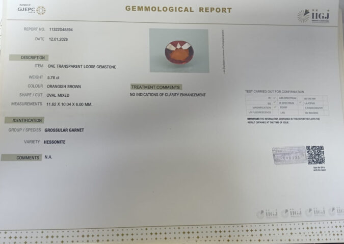 Beautiful 5.76 Cts Natural Hessonite Garnet (Unique-Mines) sva 6+ Ratti HESSONITE GOMED. Free Horoscope & Free Pundit Ji Astrological Advise / Consultation. Original Natural Lab certified gems by IGI GTL / Birth stones / Large Gem Selection of shree shubh Rashi Ratan Vedic dhan at Gem Mines. May Bhagwan Brahma, Vishnu, Shiv & Universe bless you.