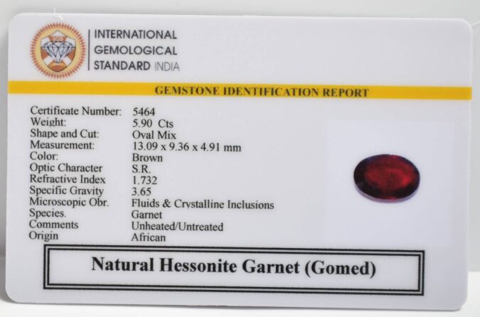 Beautiful 5.9 Cts Natural Hessonite Garnet (Gomed) (Very Good-Mines) sva 6+ Ratti HESSONITE GOMED. Free Horoscope & Free Pundit Ji Astrological Advise / Consultation. Original Natural Lab certified gems by IGI GTL / Birth stones / Large Gem Selection of shree shubh Rashi Ratan Vedic dhan at Gem Mines. May Bhagwan Brahma, Vishnu, Shiv & Universe bless you.