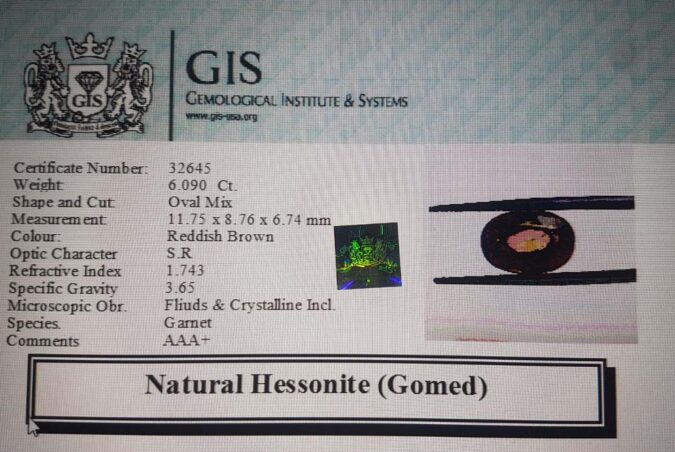 Beautiful 6.09 Ct. Hessonite (Gomed) (Ceylon (Sri Lanka) Mines) Sava 6 Ratti Gomed. Free Horoscope & Free Pundit Ji Advise / Consultation. Original Natural Lab certified gems by IGI GTL / Birth stones / Large Gem Selection of shree shubh Rashi Ratan Vedic dhan at Gem Mines. May Bhagwan Brahma, Vishnu, Shiv & Universe bless you.
