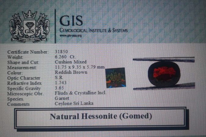 Beautiful 6.26 Ct. Hessonite (Gomed) (Ceylon Sri Lanka Mines) Sava 6 Ratti Gomed. Free Horoscope & Free Pundit Ji Advise / Consultation. Original Natural Lab certified gems by IGI GTL / Birth stones / Large Gem Selection of shree shubh Rashi Ratan Vedic dhan at Gem Mines. May Bhagwan Brahma, Vishnu, Shiv & Universe bless you.