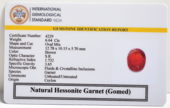 Beautiful 6.64 Cts Natural Hessonite Garnet (Gomed) (AAA+-Mines) sva 7+ Ratti HESSONITE GOMED. Free Horoscope & Free Pundit Ji Astrological Advise / Consultation. Original Natural Lab certified gems by IGI GTL / Birth stones / Large Gem Selection of shree shubh Rashi Ratan Vedic dhan at Gem Mines. May Bhagwan Brahma, Vishnu, Shiv & Universe bless you.
