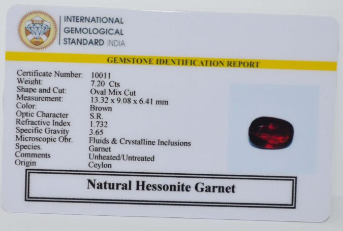 Beautiful 7.2 Cts Natural Hessonite Garnet (Top-Mines) sva 8+ Ratti HESSONITE GOMED. Free Horoscope & Free Pundit Ji Astrological Advise / Consultation. Original Natural Lab certified gems by IGI GTL / Birth stones / Large Gem Selection of shree shubh Rashi Ratan Vedic dhan at Gem Mines. May Bhagwan Brahma, Vishnu, Shiv & Universe bless you.