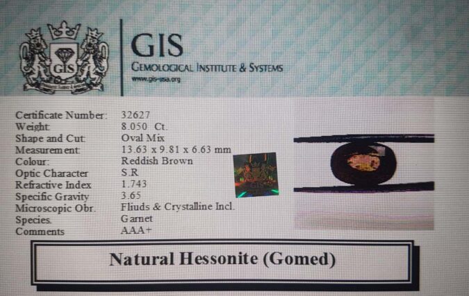 Beautiful 8.05 Ct. Hessonite (Gomed) (Ceylon (Sri Lanka) Mines) Sava 8 Ratti Gomed. Free Horoscope & Free Pundit Ji Advise / Consultation. Original Natural Lab certified gems by IGI GTL / Birth stones / Large Gem Selection of shree shubh Rashi Ratan Vedic dhan at Gem Mines. May Bhagwan Brahma, Vishnu, Shiv & Universe bless you.