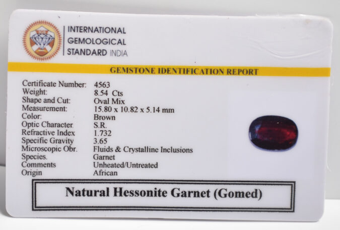 Beautiful 8.54 Cts Natural Hessonite Garnet (Gomed) (AAA-Mines) sva 9+ Ratti HESSONITE GOMED. Free Horoscope & Free Pundit Ji Astrological Advise / Consultation. Original Natural Lab certified gems by IGI GTL / Birth stones / Large Gem Selection of shree shubh Rashi Ratan Vedic dhan at Gem Mines. May Bhagwan Brahma, Vishnu, Shiv & Universe bless you.