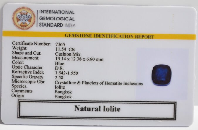 Beautiful 11.54 Cts Natural Iolite (AAA+-Mines) sva 12+ Ratti IOLITE NILLI. Free Horoscope & Free Pundit Ji Astrological Advise / Consultation. Original Natural Lab certified gems by IGI GTL / Birth stones / Large Gem Selection of shree shubh Rashi Ratan Vedic dhan at Gem Mines. May Bhagwan Brahma, Vishnu, Shiv & Universe bless you.