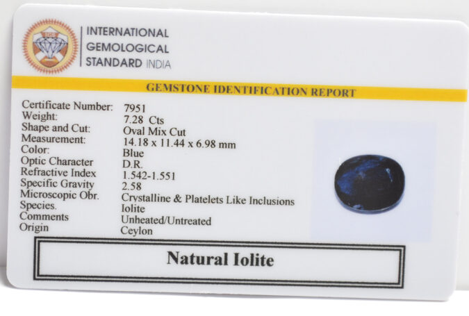 Beautiful 7.28 Cts Natural Iolite (AAA-Mines) sva 8+ Ratti IOLITE NILLI. Free Horoscope & Free Pundit Ji Astrological Advise / Consultation. Original Natural Lab certified gems by IGI GTL / Birth stones / Large Gem Selection of shree shubh Rashi Ratan Vedic dhan at Gem Mines. May Bhagwan Brahma, Vishnu, Shiv & Universe bless you.