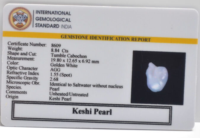 Beautiful 8.84 Cts Keshi Pearl (AAA+-Mines) sva 9+ Ratti KESHI PEARL. Free Horoscope & Free Pundit Ji Astrological Advise / Consultation. Original Natural Lab certified gems by IGI GTL / Birth stones / Large Gem Selection of shree shubh Rashi Ratan Vedic dhan at Gem Mines. May Bhagwan Brahma, Vishnu, Shiv & Universe bless you.