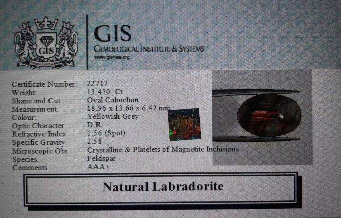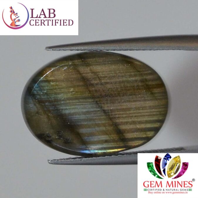 Beautiful 13.45 Ct. Labradorite (Canada Mines) Sava 14 Ratti. Free Horoscope & Free Pundit Ji Advise / Consultation. Original Natural Lab certified gems by IGI GTL / Birth stones / Large Gem Selection of shree shubh Rashi Ratan Vedic dhan at Gem Mines. May Bhagwan Brahma, Vishnu, Shiv & Universe bless you.