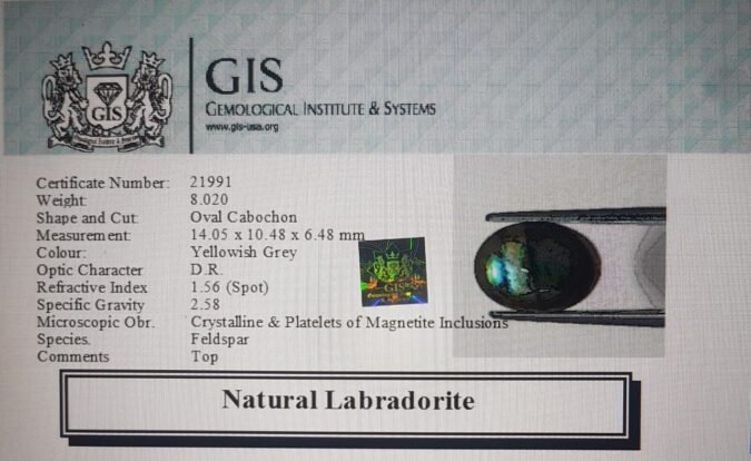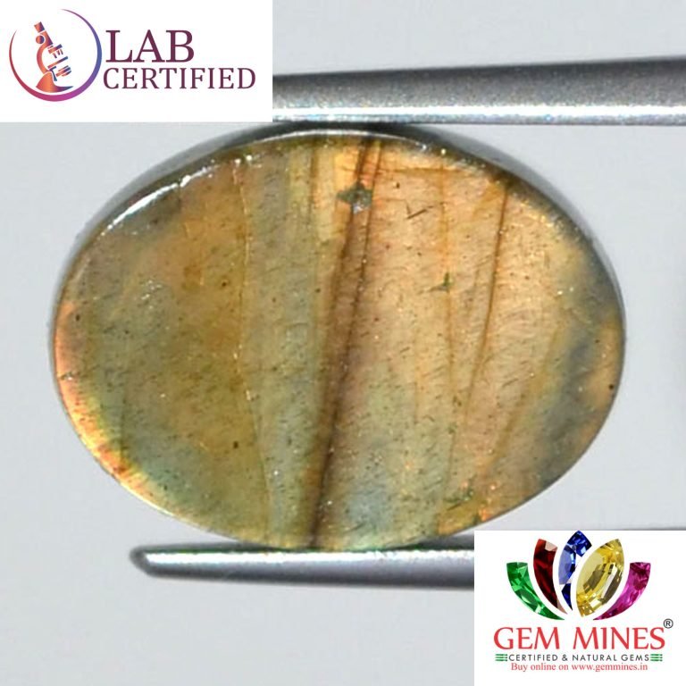 Beautiful 8.02 Ct. Labradorite (Canada Mines) Sava 8 Ratti Labradorite. Free Horoscope & Free Pundit Ji Advise / Consultation. Original Natural Lab certified gems by IGI GTL / Birth stones / Large Gem Selection of shree shubh Rashi Ratan Vedic dhan at Gem Mines. May Bhagwan Brahma, Vishnu, Shiv & Universe bless you.