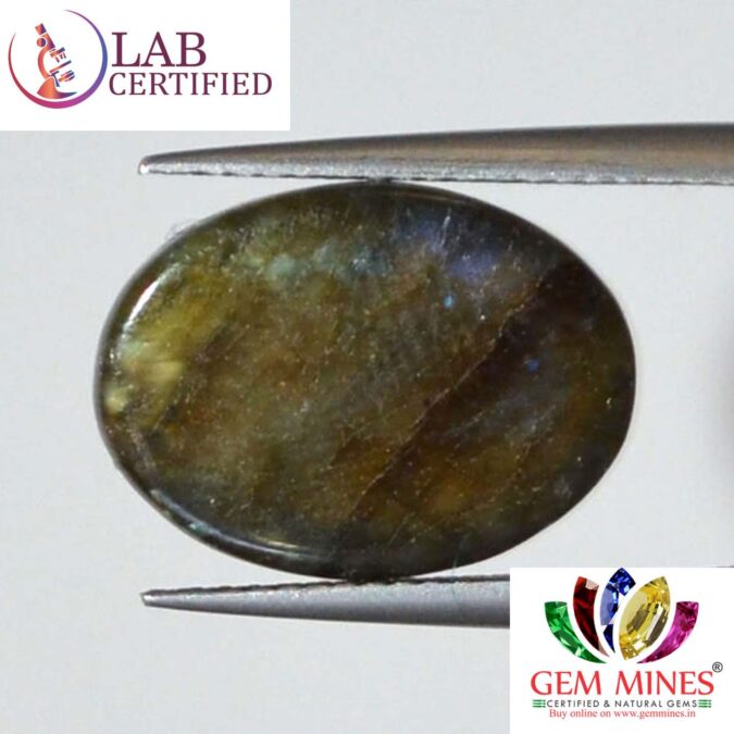Beautiful 8.52 Ct. Labradorite (Canada Mines) Sava 9 Ratti. Free Horoscope & Free Pundit Ji Advise / Consultation. Original Natural Lab certified gems by IGI GTL / Birth stones / Large Gem Selection of shree shubh Rashi Ratan Vedic dhan at Gem Mines. May Bhagwan Brahma, Vishnu, Shiv & Universe bless you.