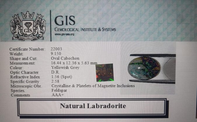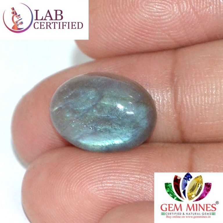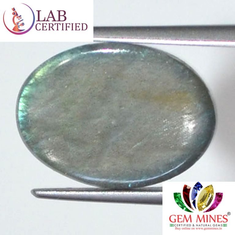 Beautiful 9.15 Ct. Labradorite (Canada Mines) Sava 10 Ratti Labradorite. Free Horoscope & Free Pundit Ji Advise / Consultation. Original Natural Lab certified gems by IGI GTL / Birth stones / Large Gem Selection of shree shubh Rashi Ratan Vedic dhan at Gem Mines. May Bhagwan Brahma, Vishnu, Shiv & Universe bless you.