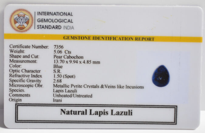 Certified Natural Lapis Lazuli 5.06 Ct.(5+ Ratti) in Pear Cabochon shape