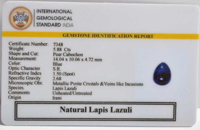 Certified Natural Lapis Lazuli 5.88 Ct.(6+ Ratti) in Pear Cabochon shape
