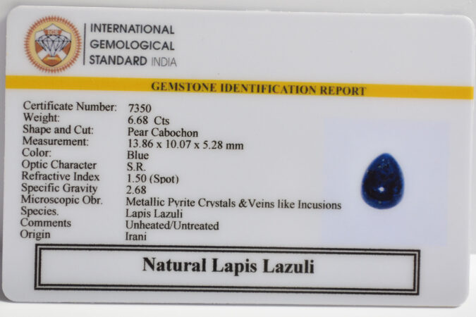 Certified Natural Lapis Lazuli 6.68 Ct.(7+ Ratti) in Pear Cabochon shape