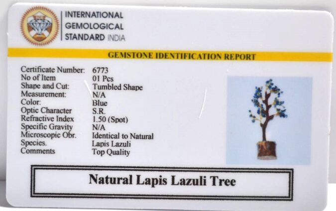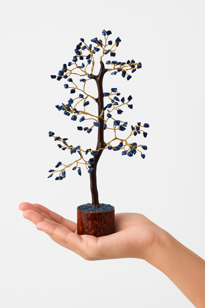 Lapis Lazuli is known as the “Stone of Wisdom and Truth”, treasured since ancient times for its deep blue color and its metaphysical properties that stimulate mental clarity, enhance insight, and encourage honest expression. The tree symbolizes growth and stability, representing a flourishing path toward knowledge and higher consciousness.