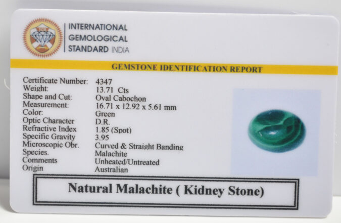Certified Natural Malachite ( Kidney Stone) 13.71 Ct.(15+ Ratti) in Oval Cabochon shape