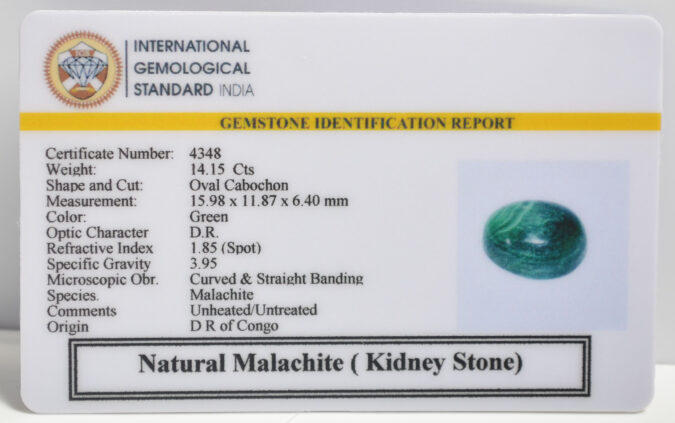 Certified Natural Malachite ( Kidney Stone) 14.15 Ct.(15+ Ratti) in Oval Cabochon shape