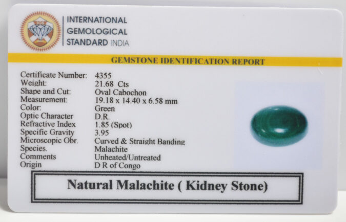 Certified Natural Malachite ( Kidney Stone) 21.68 Ct.(24+ Ratti) in Oval Cabochon shape