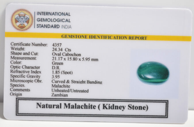 Certified Natural Malachite ( Kidney Stone) 24.34 Ct.(27+ Ratti) in Oval Cabochon shape