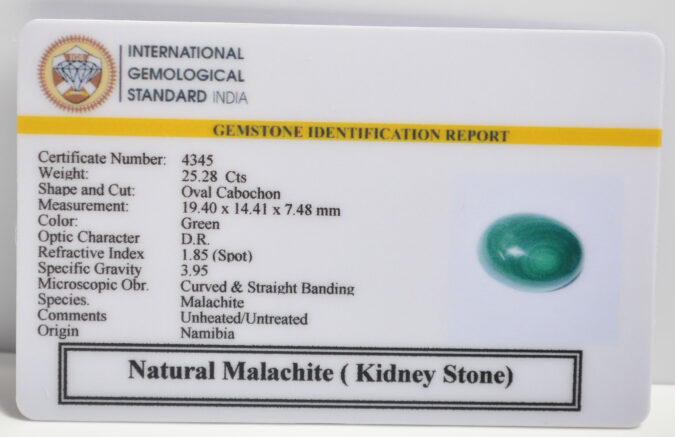 Certified Natural Malachite ( Kidney Stone) 25.28 Ct.(28+ Ratti) in Oval Cabochon shape